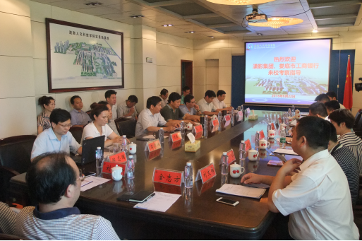 考察参观之后,太阳成官网全体校领导和相关部门、二级学院负责人与潇影集团一行在明德楼第一会议室,举行了合作办学座谈会。