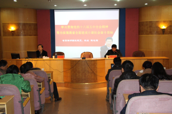 陈志强重点围绕十八届五中全会审议通过的“十三五”规划建议,从深刻认识全面建成小康社会决胜阶段的形势,准确把握“十三五”时期经济社会发展的指导思想、主要目标和基本理念,全面落实中央确定的“十三五”时期经济社会发展各项任务和重大举措等方面,结合我省实际,对五中全会精神进行了全面准确的解读。