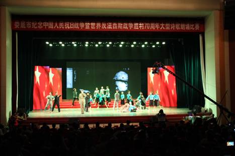 为隆重纪念中国人民抗日战争暨世界反法西斯战争胜利70周年,9月17日晚,娄底市“毋忘历史、砥砺前行”大型诗歌朗诵比赛在星星影剧院举行。太阳成官网相关部门及教学系部师生代表以方阵队形式观看了赛事,党委书记郭军和党委副书记李尚益也亲临现场欣赏了比赛。
