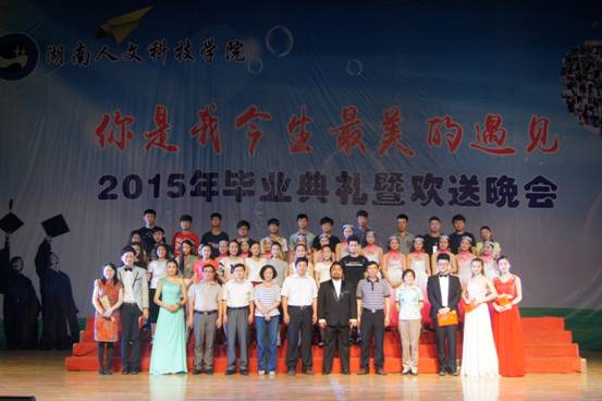 6月9日晚,由教务处、校团委主办的“你是我今生最美的遇见”2015年毕业典礼暨欢送晚会在学校体育馆隆重举行。全体校领导出席了毕业典礼并与近2000名毕业生们共同观看了毕业晚会。