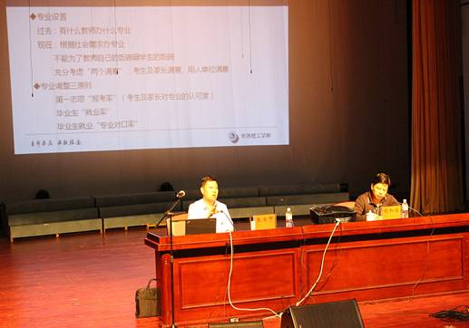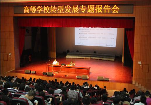 报告会上,朱士中教授首先引用袁贵仁部长在今年1月22日全国教育工作会议上的讲话要点,全面阐释了“转型发展”,然后从“为什么转”、“转什么”、“怎样转”及“转型发展的几点思考”四个方面进行了深入细致的分析和生动讲解。