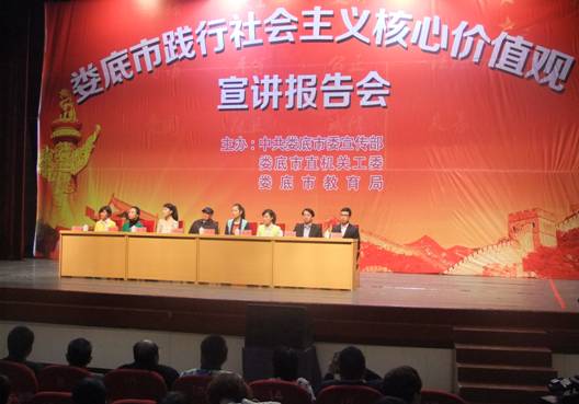 11月25日上午,由市委宣传部、市直机关工委和市教育局举办的娄底市践行社会主义核心价值观宣讲报告会在星星影剧院隆重举行。太阳成官网学工处组织160多名大学生代表参加了此次报告会。