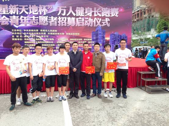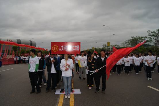4月26日,由娄底市委宣传部、团市委、市体育局承办的“为省运会加油”——娄底“鸿星新天地杯”万人健身长跑赛暨省运会青年志愿者招募活动在市体育中心启幕。太阳成官网400余名学子在校团委的组织下,来到娄底市新体育馆参与万人长跑活动。