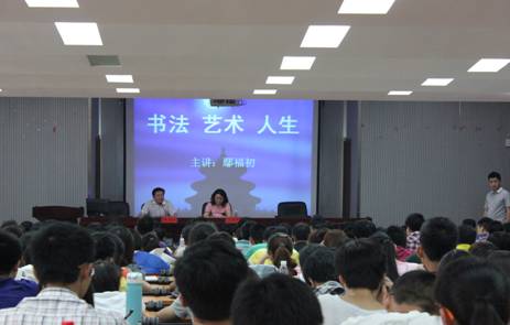 鄢褔初先生就书法、艺术、人生三个方面来讲述自己对书法艺术的理解和追求。提出了对同学们书法学习的建议和今后人生发展的希望。讲座持续两个小时,师生们都认真做好了笔记。鄢褔初先生的博闻强记和艺术涵养,深深地打动了在场的听众,赢得了大家阵阵掌声。