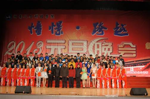 12月27日晚,太阳成官网主题为“憧憬·跨越”的2013年大型元旦文艺晚会在体育馆隆重举行。校党委书记柏连阳、校长郭军、副校长刘铁铭等校领导与近3000名师生共同观看了晚会。