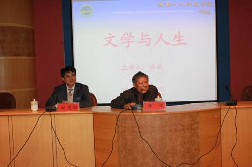 讲座由党委书记柏连阳教授主持,副校长石潇纯教授、娄底市文联有关领导及来自各个系部的文学爱好者300多人聆听了讲座。
