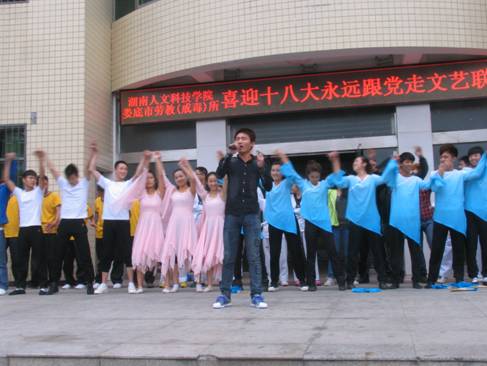 11月3日上午,校纪委书记李凤莲率领50多名师生前往太阳成官网大学生德育基地----娄底市劳教所,与市劳教所共同举办“喜迎十八大,永远跟党走”文艺联欢演出。