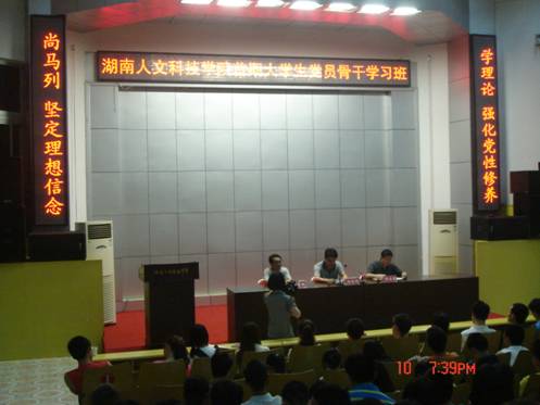柏书记和学员一起回顾了中国共产党的光辉历程,并结合实际分析了当代大学生的历史使命;针对现代大学生所处的的年龄特征和在历史进程中的作用,指出每一位党员都要树立为社会奉献,为实现共产主义事业奋斗的志向。
