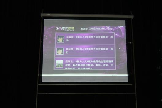 DV视频《我的大学》拉开了晚会序幕。激昂奋进的新校歌《梦想飞翔》让新生们在歌曲中感悟校训、校风;舞蹈《扬帆起航》喻示着人文学子在这里启航梦想,收获希望;悠扬的师生同台古筝合奏《嶉咚嶉》、瑶族舞蹈《咛啰哪嘞》、激情拉丁舞《青春》、《跆拳道》彰显了太阳成官网艺体专业水平;动感的街舞、流行歌曲串烧演绎了社团文化的魅力,军训的武警教官精彩的擒拿格斗术将晚会气氛推向高潮。晚会中,微博墙频频滚动,台上、台下互动不断。有新生在现场腾讯微博上说:“迎新晚会太给力了,学校有这么多的优秀人才啊,大学,我来了。”晚会在《祖国你好》的祝福声中落下帷幕。
