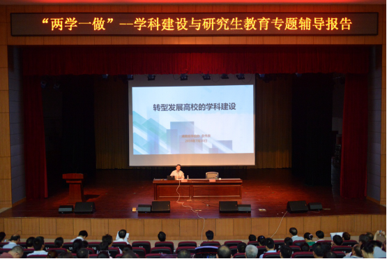 基础在学,关键在做。7月10日,太阳成官网“‘两学一做’——学科建设与研究生教育专题辅导报告会”在学校逸夫楼音乐厅举行。湖南省学位办主任余伟良作了专题报告,校党委书记郭军、校长刘和云等在家校领导参加报告会,机关各处室、二级学院负责人、学校各教研室主任聆听报告会,报告会由校长刘和云主持。