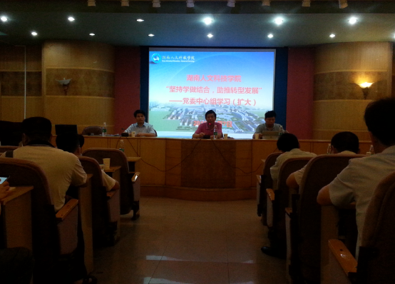 6月7日下午,学校党委中心学习组在养根楼报告厅召开扩大会议。会议紧密联系“两学一做”学习教育和学校工作实际,突出“坚持学做结合,助推转型发展”主题。党委书记郭军主持会议。全体校领导、各二级学院领导、实验室(实训中心)主任、教研室主任、教学秘书及部分机关和教辅单位负责人共190人参加了会议。