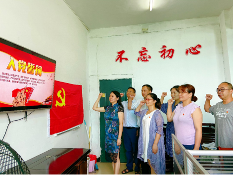 在党的七一生日之际,宣传统战部党支部在明德楼515室重温入党誓词,并开展政治学习。宣传统战部部长、党支部书记谢柳带领支部全体党员在鲜红的党旗下,庄严举起右手,握紧拳头,重温入党誓词。入党誓词的十二句话,句句千钧,让大家再次回想起令人激动的入党时刻,提醒自己牢记曾经许下的铮铮誓言。