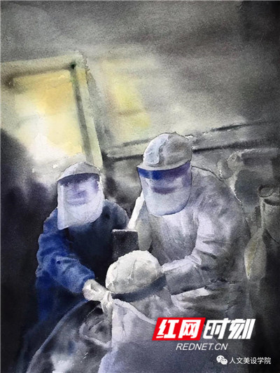 《抗疫战士》。美术与设计学院美术学专业教授陆序彦