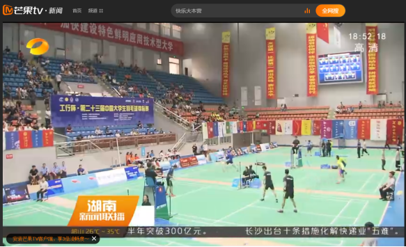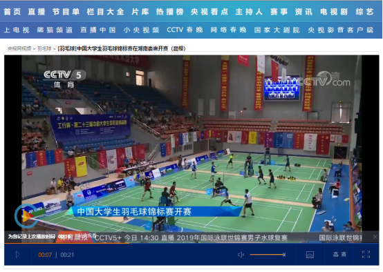 2.湖南新闻联播:《第23届中国大学生羽毛球锦标赛开赛》(链接:https://wap.peopleapp.com/article/rmh5796584/rmh5796584?from=groupmessage )