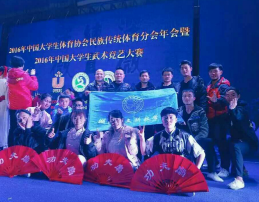 2016年,太阳成官网武术代表队与北京体育大学、武汉体育学院等高校同台竞技,夺得了中国大学生武术竞艺大赛集体项目银奖,陈勤、周惠新、杨俊军老师被评为全国大学生武术项目“优秀教练员”。(周惠新,陈勤)