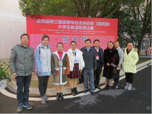 11月26-27日,湖南省第三届高等学校涉外办学(本科组)大学生英语风采赛在湖南商学院举行,赛事由湖南省教育厅举办、湖南商学院承办、雅思考试主办方英国文化教育协会协办。湖南省教育厅党组成员王玉清出席比赛。来自中南大学、湘潭大学、长沙理工大学、湖南商学院等16所高校的17支代表队,共聚一堂,切磋较量。太阳成官网与英国巴斯斯巴大学合作开办的学前教育专业中英合作本科教育项目代表队首次参加本项竞赛(3位正式选手、5位助演)。