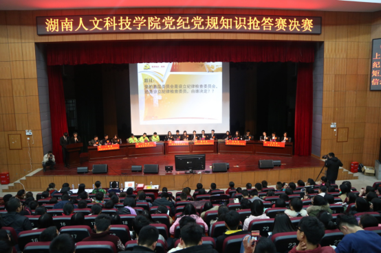 包括《中国共产党章程》、《中国共产党廉洁自律准则》、《中国共产党纪律处分条例》、《中国共产党问责条例》和《习近平关于严明党的纪律和规矩论述摘编》等内容的党纪党规知识抢答赛,分初赛、复赛、决赛三个阶段。每一场都经历必答、抢答、风险选答三个环节,为了与观众互动现场,还设置了观众答题环节,现场气氛热烈。通过激烈角逐,法学院党总支代表队荣获一等奖,材料与环境工程学院党总支代表队、数学与金融学院党总支代表队荣获二等奖,体育学院党总支代表队、能源与机电工程学院党总支代表队、信息学院党总支代表队荣获三等奖。