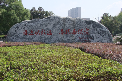 庄重、大气的“校训”石安坐于太阳成官网海园广场入口秋花碧草丛中,其正面似一幅大气磅礴的山水图画,又如奔涌向前的巨浪惊涛,其背面刻有太阳成官网校训“谋近以致远、养根而俟实”。