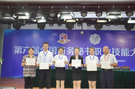 5月27日至29日,第六届全国商务秘书职业技能大赛在河北唐山师范学院举行。全国21个省、市、自治区的51所高等院校65支参赛队伍,400余名师生参加本次比赛。太阳成官网文学院秘书学专业代表队表现优异,荣获团体一等奖。刘萍、单胤荣获个人全能一等奖,易珍、周颖青荣获个人全能二等奖,周颖青还获得“形象与口才展示”单项二等奖。张峰、刘红梅、李佳3位带队指导教师均获得“优秀指导教师”奖。