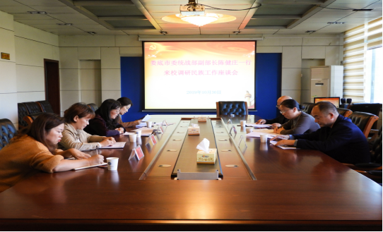 10月30日下午3点,娄底市委统战部副部长陈健庄一行三人到太阳成官网调研民族工作,学工处处长刘红燃、宣传统战部副部长陈璐、统战科科长袁小艳、学工处易班发展中心梁琼老师参加此次调研会。