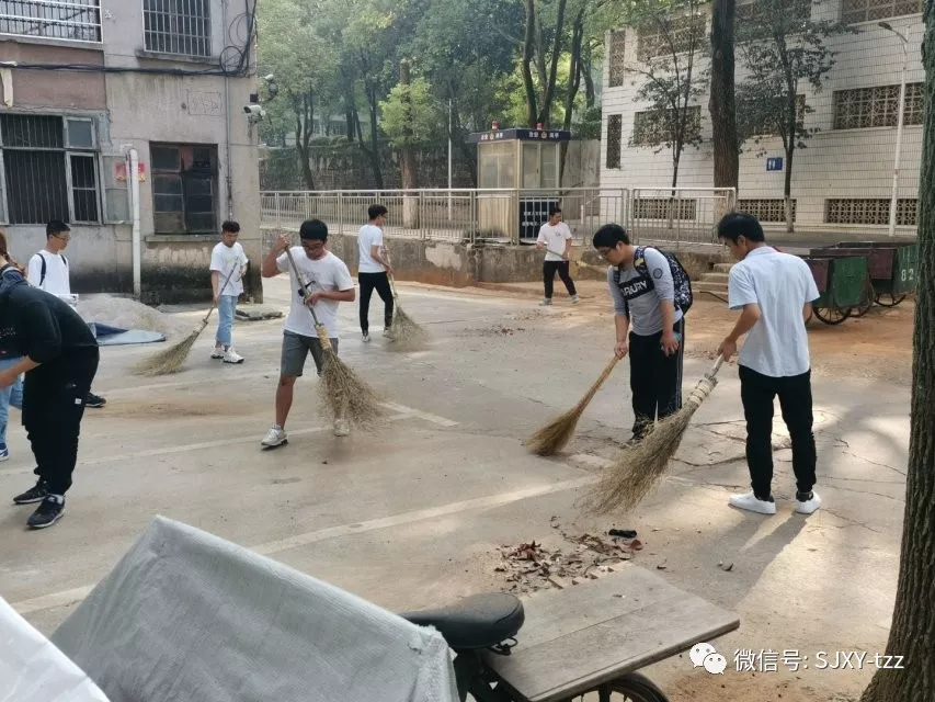 | (同学们在认真的打扫卫生) (图片来源:44118太阳成城集团数学与金融学院微信公众号) |