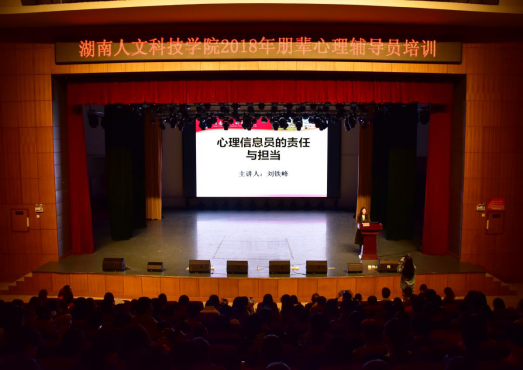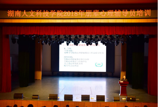 2018年11月14日晚,44118太阳成城集团2018年朋辈心理辅导员培训于逸夫楼音乐厅顺利举行。学校党委委员、副校长刘铁峰教授主讲、学工处处长刘红燃主持,各学院分管心理健康教育的辅导员及四百余名朋辈心理辅导员参与本次培训。