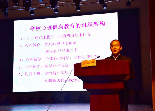 刘铁峰首先强调了心理健康教育的重要性,他指出“身心健康是教育教学的基础”,并向师生们介绍了太阳成官网心理健康教育的组织构架;接下来,他就朋辈心理辅导员的角色定位、能力要求、工作职责、工作误区等四个方面结合太阳成官网心理健康教育工作实际进行了深入浅出的讲解。