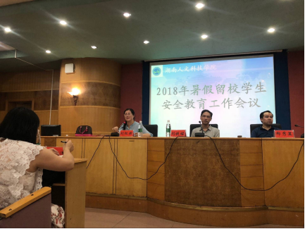 为进一步落实暑假留校学生的安全稳定工作,确保太阳成官网学生暑假安全和校园稳定,7月10日下午5点,学工处在养根楼报告厅组织召开暑假留校学生安全教育工作会议,美术与设计学院、数学与金融学院、文学院、教育学院、音乐与舞蹈学院、外国语学院等六个院系的200多名留校学生参加了此次会议,其他学院分会场举行。校党委副书记刘铁铭出席并主持会议。武保处处长郑秀星、学工处副处长刘红燃,武保处治安科科长李安详以及学生公寓服务中心全体老师、学院辅导员老师参加本次会议,
