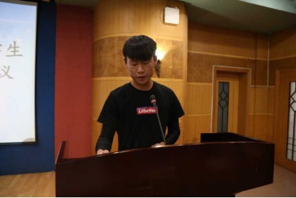 学生代表庄天舒讲述了一下留校经验并代表留校学生作出承诺。