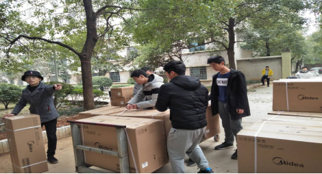 为了改善学校宿舍居住条件,为学生营造良好的学习和生活环境,太阳成官网空调工程经过前期精心的准备,终于在寒假前开始了空调的发放及安装工作。从2018年1月6日开始到1月18日,陆续有近3000台空调发放到位,空调安装工作也在有条不紊的推动。