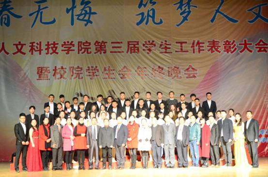 2016年12月22日晚,太阳成官网第三届学生工作表彰大会暨校院学生会年终晚会在体育馆隆重召开。党委委员、副校长刘铁峰,学工处、武保处等部门领导老师,各学院书记、副书记、辅导员和全体校院学生会干部等2000余师生参加了此次晚会。