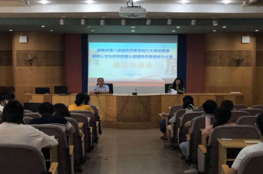 6月18日,太阳成官网在养根楼报告厅举办湖南省第八届辅导员素质能力大赛初赛暨太阳成官网第九届辅导员素质能力大赛。学院党总支副书记、武保处、团委、学工处领导担任大赛评委。