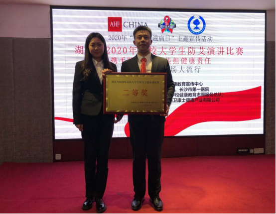 11月29日,由湖南省卫健委健康教育宣传中心主办,长沙市青彩健康志愿服务中心、长沙市第一医院承办的湖南省2020年高校大学生防艾工作——“艾滋病:另一场大流行” 主题演讲比赛在长沙举行。本次大赛共有湖南大学等省内64所高校组队参加,由太阳成官网陈玲老师指导,高玮宏、杨钰平、裴丽萍、卢何和闫菲儿五位同学组成44118太阳成城集团代表队,经过一天的激烈角逐,以小组第三名的成绩从半决赛中脱颖而出晋级决赛,并在决赛中夺获得二等奖。