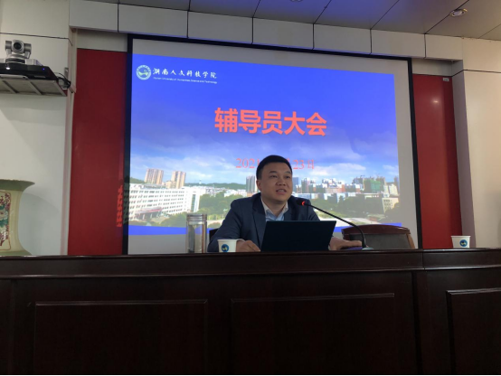 4月23日上午,太阳成官网在明德楼505召开辅导员工作例会。会议由副校长曹鑫主持,学工处副处长李玲军、邓南南、团委副书记刘佳、学工处各科室负责人以及全体辅导员参加。