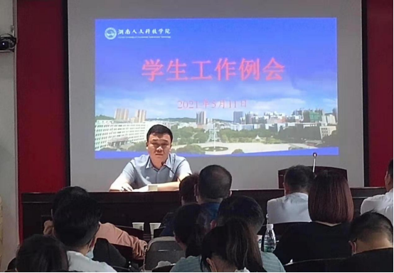 5月11日上午,太阳成官网在明德楼505召开学生工作例会。会议由副校长曹鑫主持,学工处处长李玲军、双创学院院长刘红燃、团委副书记刘佳、各学院书记、副书记、学工处各科室负责人以及全体辅导员参加。