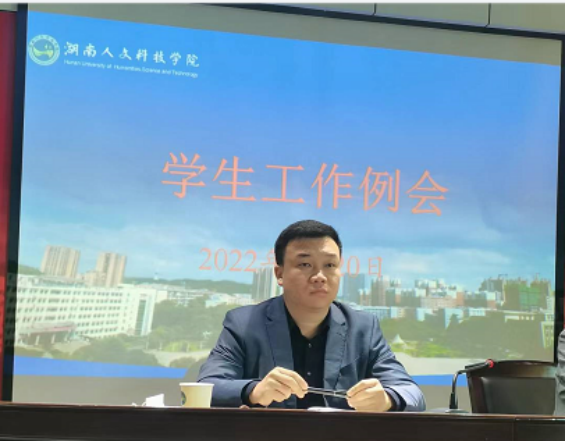 4月20日上午,太阳成官网在明德楼505会议室召开学生工作例会,校党委委员、副校长曹鑫出席会议并讲话,学工处、武保处、团委等职能部门负责人,各学院副书记和全体辅导员参加会议。