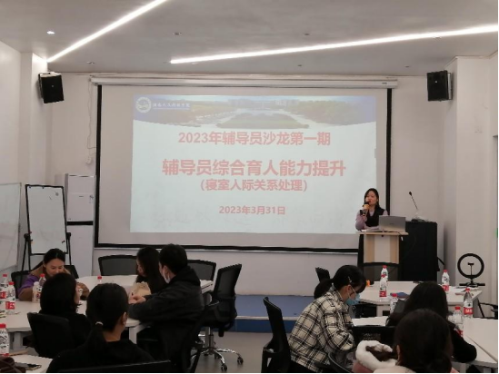 本期沙龙主题为辅导员综合育人能力提升之宿舍人际关系处理。美术与设计学院姚婧、信息学院王觉两位辅导员就本人工作期间的相关案例与辅导员们进行了分享交流。随后,聚集宿舍人际关系问题的处理,辅导员展开了热烈的分组研讨,各组推举代表介绍了本组研讨的案例情况、育人过程与成效、经验总结与启示等。
