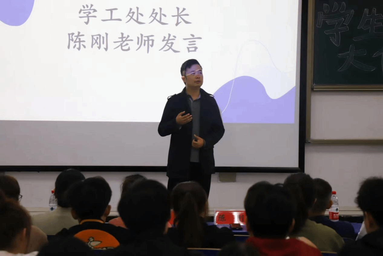陈刚指出,学生干部们不仅要做老师的“好帮手”,还要做有朝气、有锐气、有活力的有志青年。并对如何做好一名合格的学生干部做出以下几点要求:一要协调好部门的工作;二要建设好自身的学习;三要团结好部门的伙伴,打造一个充满爱的团队;四要坚定服务意识,服务好老师同学,实现自我管理、自我服务。