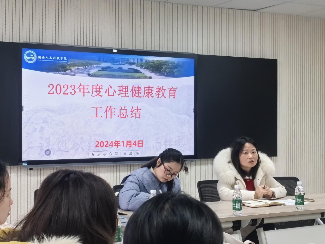 2024年1月4日,学生工作处2023年度心理健康教育工作总结大会在新食堂412会议室顺利开展。学工处副处长谢四元、心健康教育与咨询中心全体专职教师、全体心育专干参加了会议。