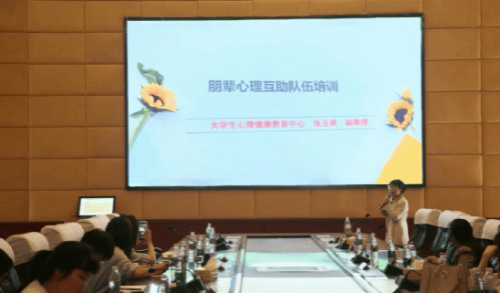 张玉桃以“朋辈心理互助队伍培训”为题做专题报告。她对“朋辈心理互助”培训的内涵和意义进行了详细解释,明确了朋辈心理互助员的基本要求和职责定位,生动形象地讲解了朋辈心理辅导的实质,充分运用真实案例,从多个方面进行分析,肯定了开展朋辈心理互助对学生成长成才的价值,指出学校和学院应加强朋辈心理互助员的选拔、管理、技能培训,提高互助员对学生异常心理与行为的识别与应对能力。