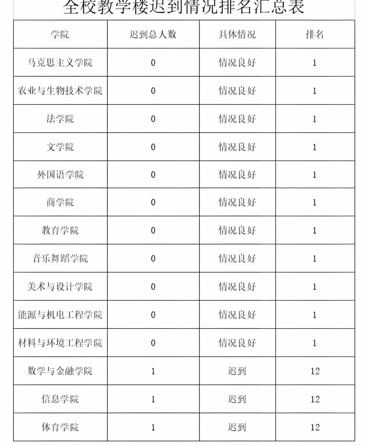 上一条:第九周晚自习、教学楼迟到及教室卫生检查情况 下一条:第七周晚自习、教学楼迟到及教室卫生检查情况