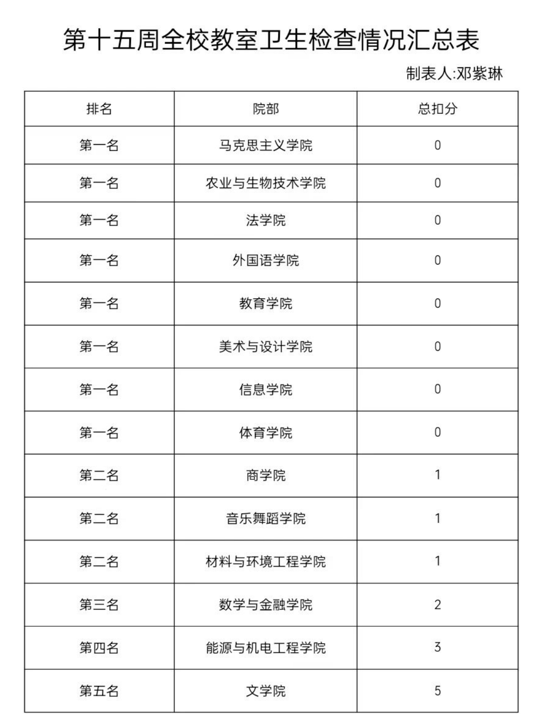 而卫生情况是校园文明的重要标志,各学院要携手共建美丽校园,让我们的大学生活因我们的自律和努力而更加精彩!