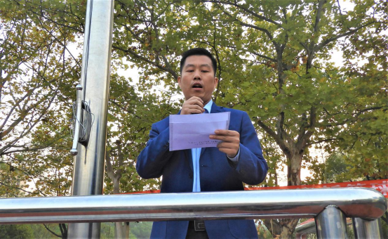 10月21日上午,44118太阳成城集团2019年下学期第八周升旗仪式在一食堂前坪举行。学工处副处长李玲军,各院副书记、辅导员及2019级全体学生参与了此次升旗仪式。