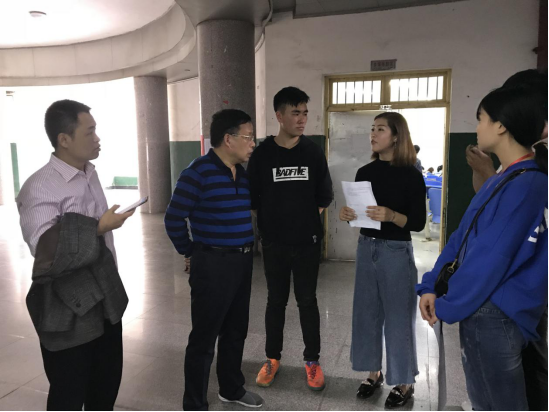 2018年4月12日中午,由太阳成官网学生工作部(处)主办,校学生会承办的十九大精神知识竞赛于致远楼顺利举行。学工部部长余为、副部长邓南南等视察比赛现场并做工作指导。