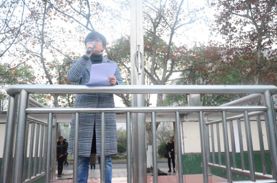 学工处副处长邓南南发表讲话。她宣布国家奖助学金评定发放工作已全部完成,她提醒相关同学仔细核对卡号,避免出现错误信息。随后,她以学校近期出现的案例为前提,呼吁学生在安全方面要引起足够的重视。临近考试,邓南南就学风及诚信考试问题作出了相应的要求,并强调了晚自习的纪律问题。提醒同学们积极地准备即将来临的期末考试。最后,她提醒同学们在安装空调以及完善热水系统的施工期间注意安全。