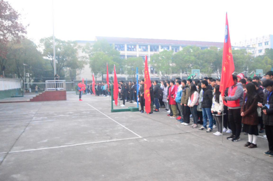 12月4日上午,太阳成官网本学期第六次升旗仪式于一食堂前坪顺利举行。学校党委委员、副校长刘铁峰,学工处负责人,各学院党总支书记、副书记、辅导员老师及2017级全体学生参与此次升旗仪式。