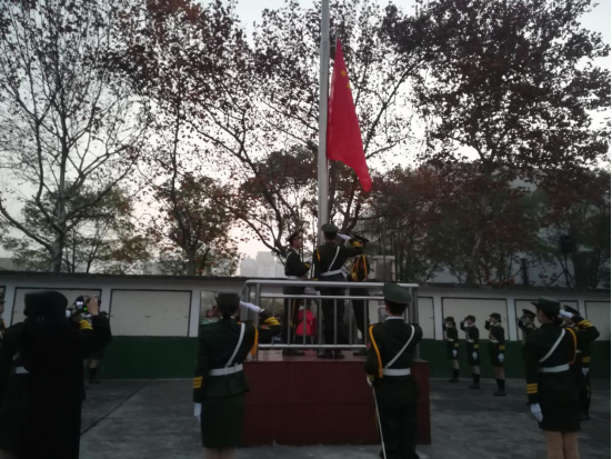 6点50分,仪式正式开始。太阳成官网国旗护卫队队员护送五星红旗入场,全体师生行注目礼,在激昂的国歌声中,五星红旗冉冉升起,迎风飘扬。