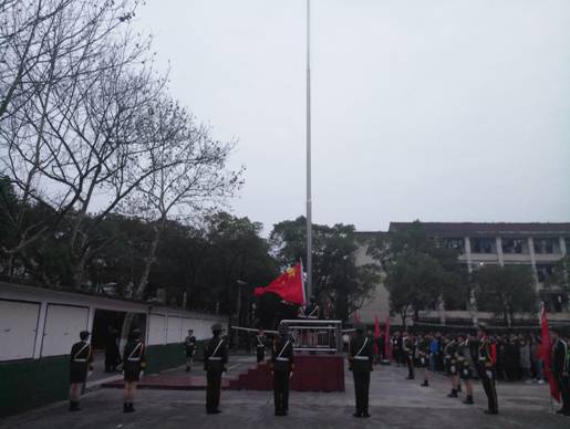 7点整,国旗班的旗手们着装整齐,迈着矫健的步伐,护着鲜艳的五星红旗入场。伴着《义勇军进行曲》的响起,在全体师生的注视中,五星红旗冉冉升起。