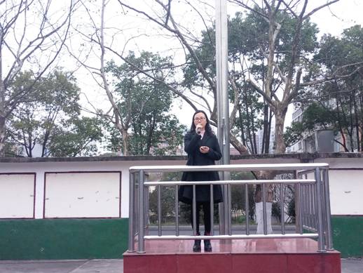 音乐舞蹈学院的王航琪同学作为学生代表作国旗下讲话,她通过自已对大学生活的感受及态度,表达了对校训“谋近而志远,养根而俟实”的理解,号召同学们珍惜青春,把握大好时光。