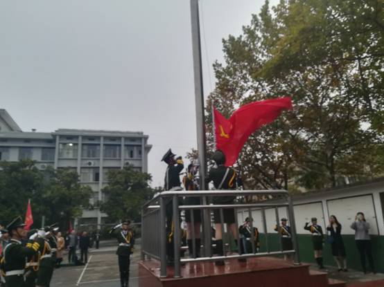 6:50分,仪式正式开始。太阳成官网国旗护卫队队员护送五星红旗入场,全体师生行注目礼,在激昂的国歌声中,五星红旗冉冉升起,飘扬在旗杆顶端。